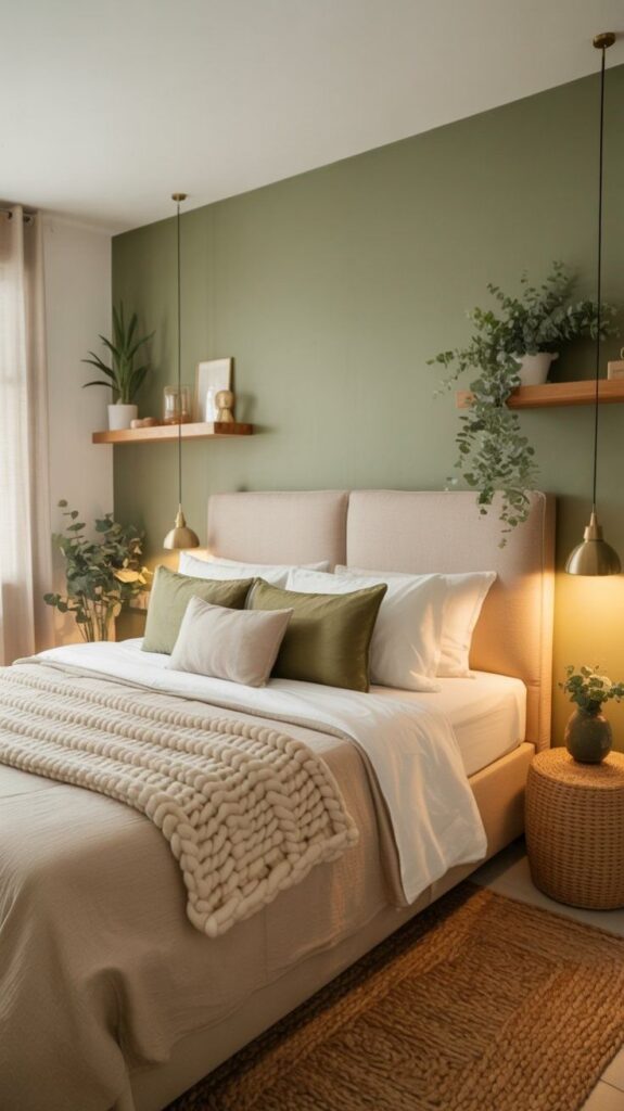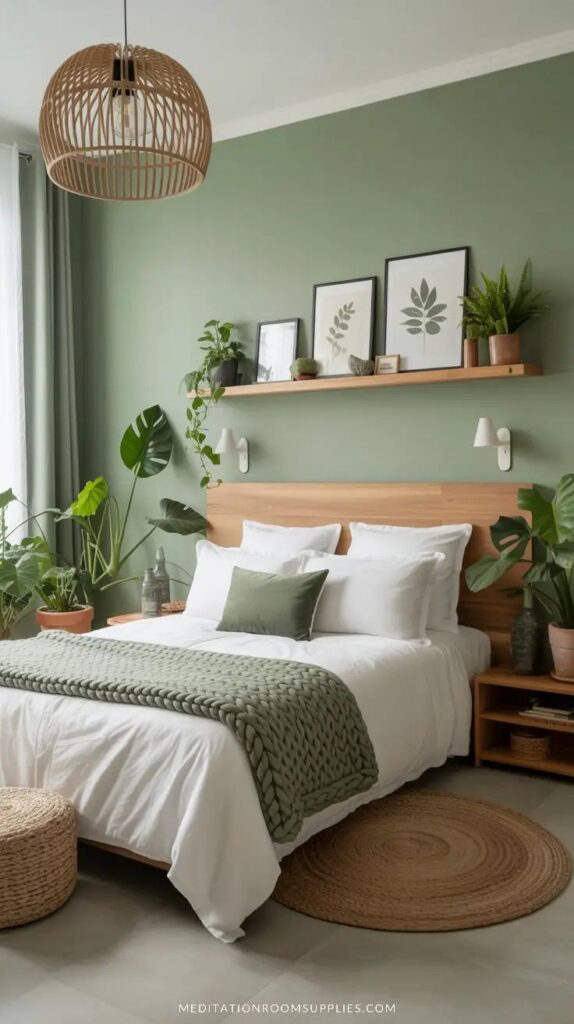 La idea es estar “alerta” para conversar, disfrutar la TV, etc. Y en el dormitorio tienen el mismo efecto, solo que allí queremos descansar y no estar alerta. Es preferible un color verde seco, azules empolvados, etc. Piensa en el menor grado de contraste posible.