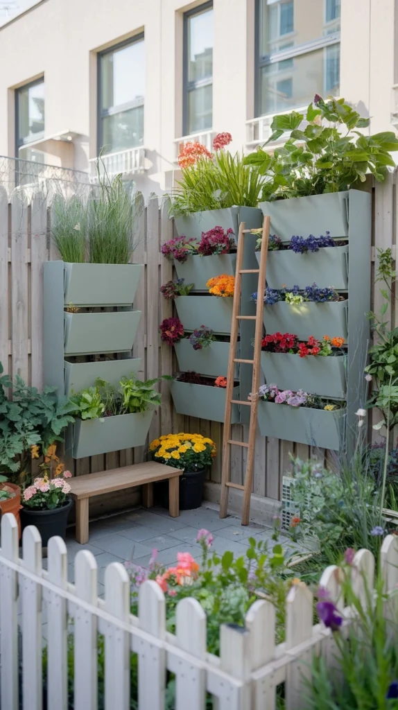 Si no tenemos espacio hacia los lados, nuestro mayor aliado es la altura. Existen jardines verticales y estantes que se utilizan como piezas para decorar. Así podrás añadir más elementos sin tener que saturar el jardín.